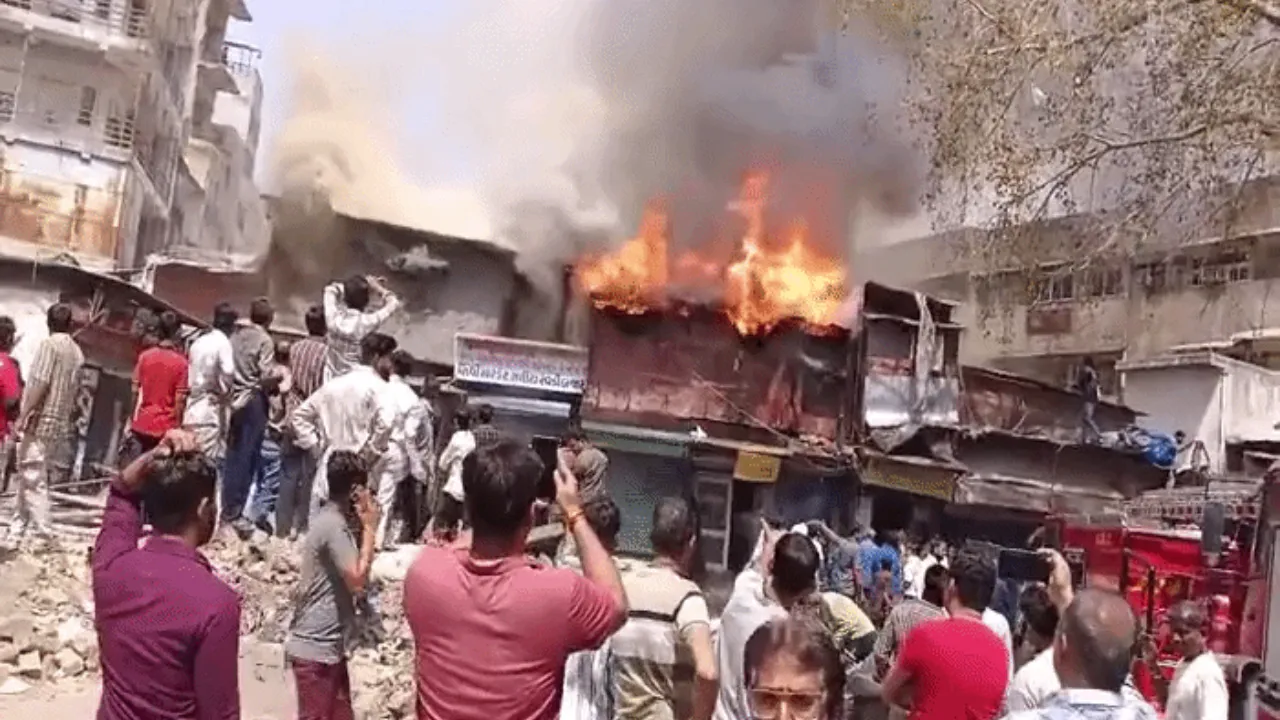 રેવડી બજારની અનેક દુકાનોમાં ભીષણ આગ લાગતા અફરાતફરી